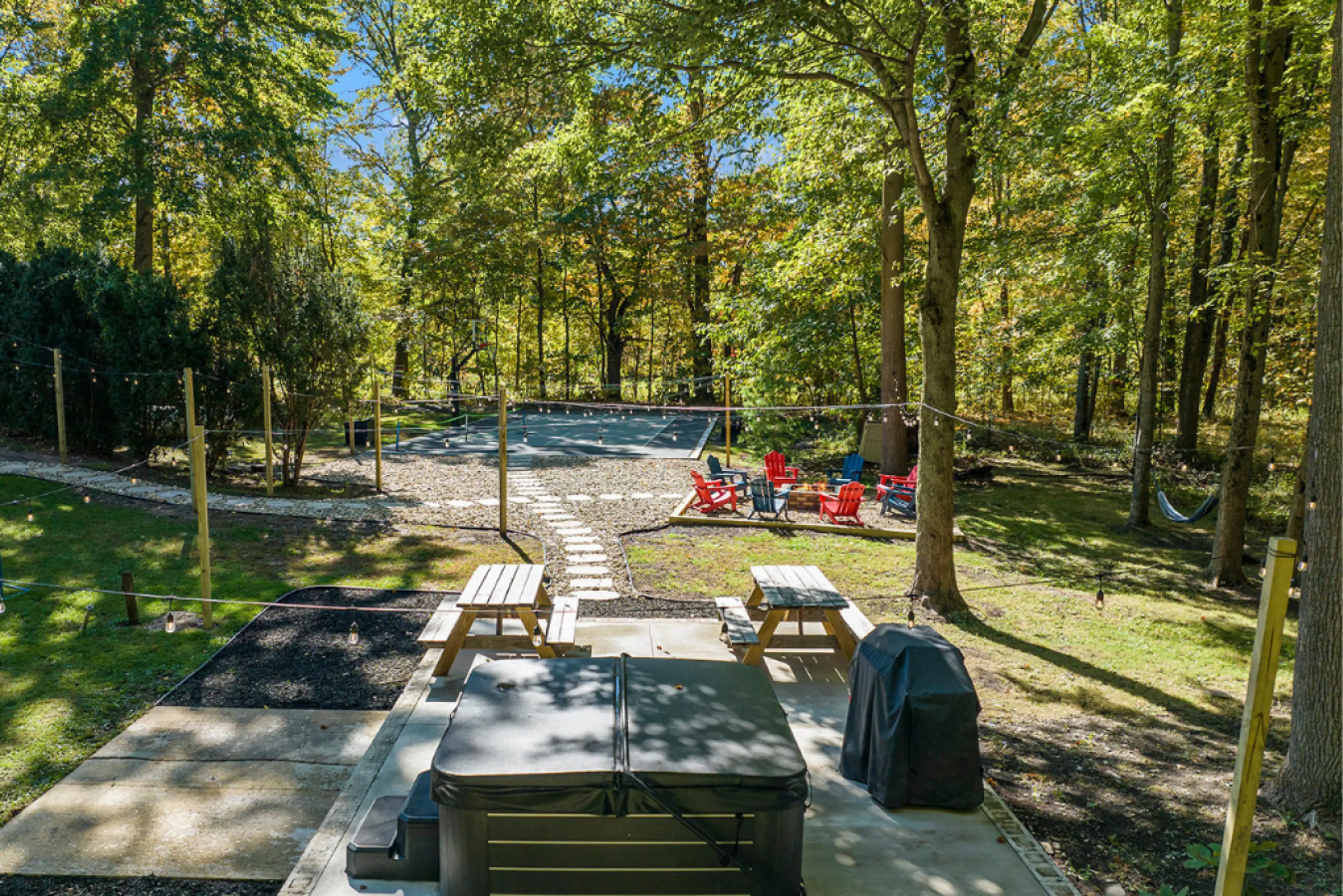 Welcome to Michigan Adventure Retreat! Huge basement game room w/ bar, multiple TVs, projector screen, pool table, foosball, shuffleboard, pinball, pop-a-shot, 7 Arcade games, giant connect four, ring toss game, board games. Pickleball/basketball court, hot tub, yard games, fire pit in secluded b...